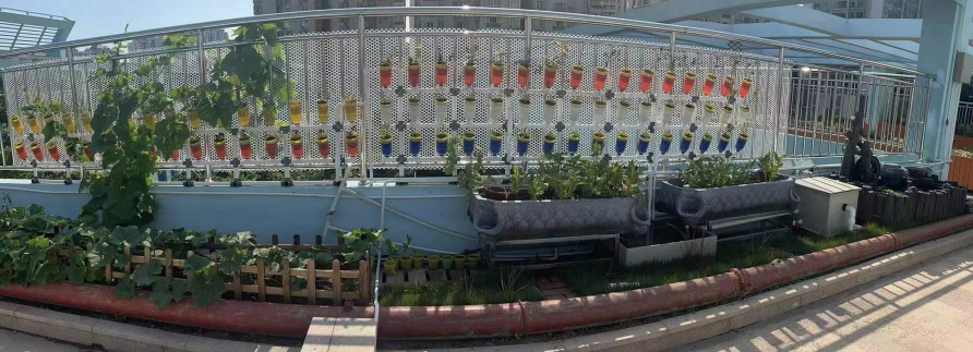公司給深圳小學(xué)安裝的魚菜共生就是運用了此原理技術(shù)生態(tài)種植了空心菜、辣椒等,目前長勢良好,已收獲一次。魚池里我們安裝了水質(zhì)傳感器,它是