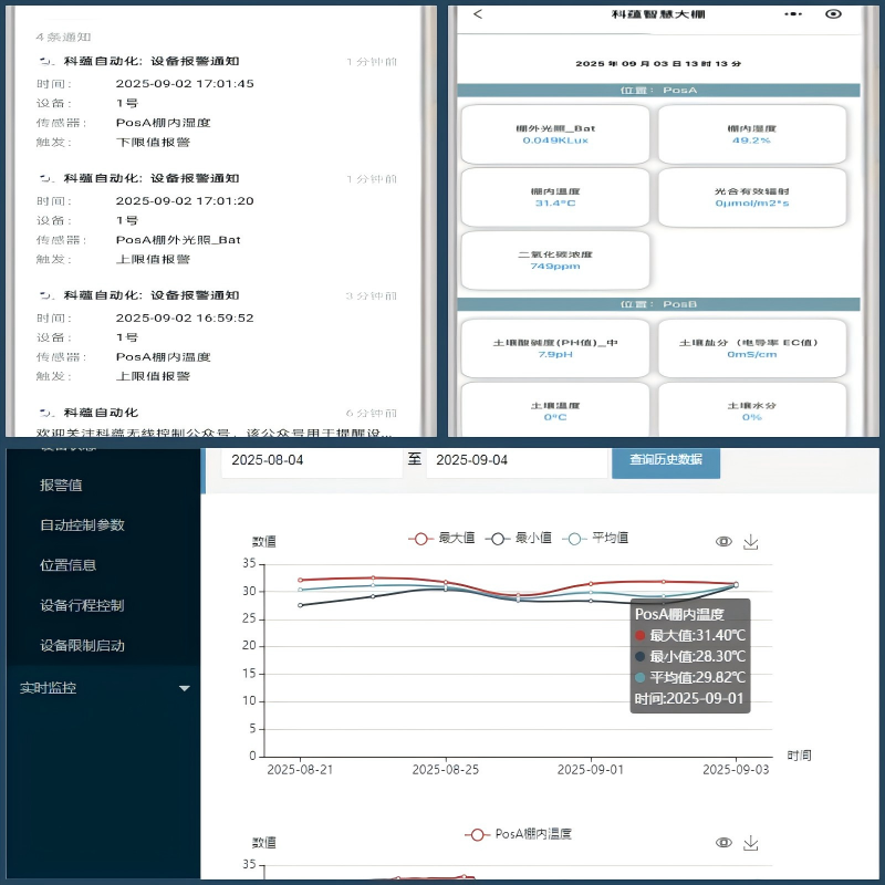 產(chǎn)品標(biāo)配9款傳感器:分別為溫、濕度傳感器,二氧化碳傳感器,光照傳感器,光合有效傳感器,土壤溫度、水分傳感器,土壤ec值、ph值傳感器。