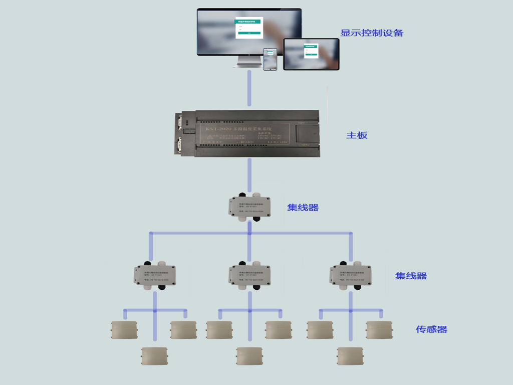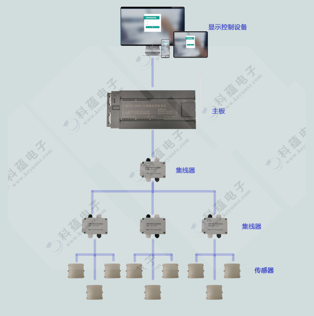 一、KST-2020多路溫度采集系統(tǒng)可以同時(shí)檢測(cè)1個(gè)至100個(gè)溫度傳感器數(shù)值,通過485協(xié)議將數(shù)值實(shí)時(shí)傳送到電腦端和手機(jī)端。