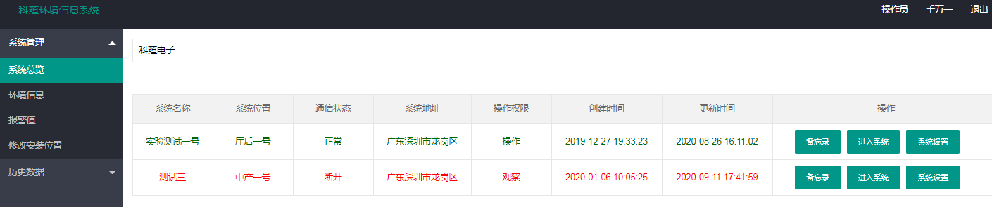 3. 通過科蘊(yùn)專用系統(tǒng)頁面在電腦/手機(jī)界面顯示各傳感器的數(shù)據(jù)采集情況。