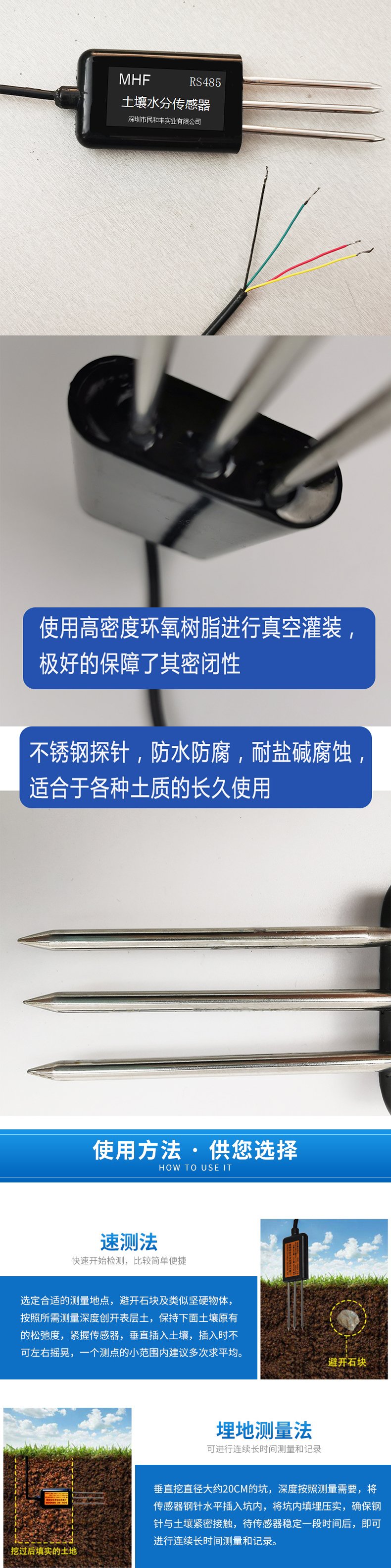 土壤溫濕度傳感器,不銹鋼探針,環(huán)氧樹脂真空灌裝,防水防腐,耐鹽堿。適合各類土質(zhì),使用壽命長;適用于農(nóng)業(yè)大棚、科研教學、園林等行業(yè),歡迎有需要的朋友前來訂購!
